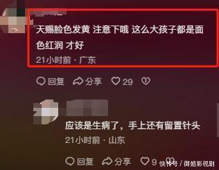 评论区看着小天赐长大的阿姨们直言:“小天赐这都生病多久了,手上还留着针。”